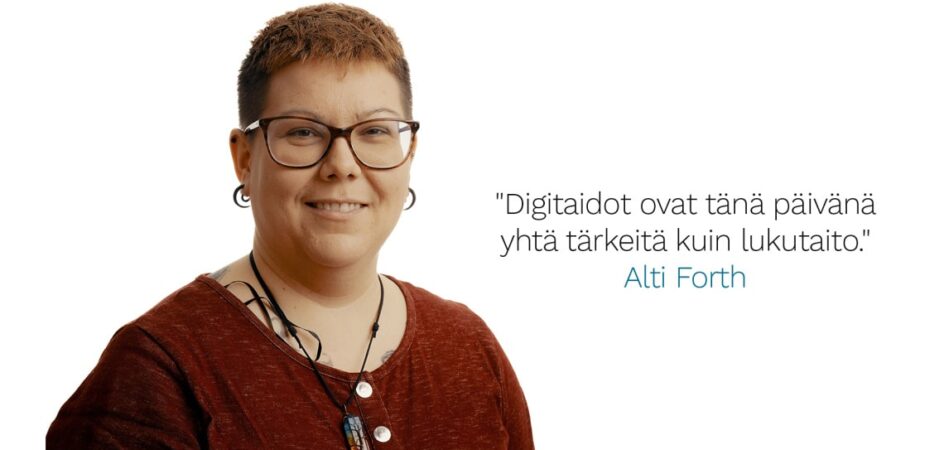 Ditten projektisuunnittelija Alti Forth hyödyntää työssään kahta ammatillista taustaa. Hän tekee työtä sosiaalialan ammattilaisena, mutta ennen sitä hän opiskeli ict-alaa ja työskenteli it-tukihenkilönä. Opiskelut jäivät kesken keskivaikean masennuksen takia.