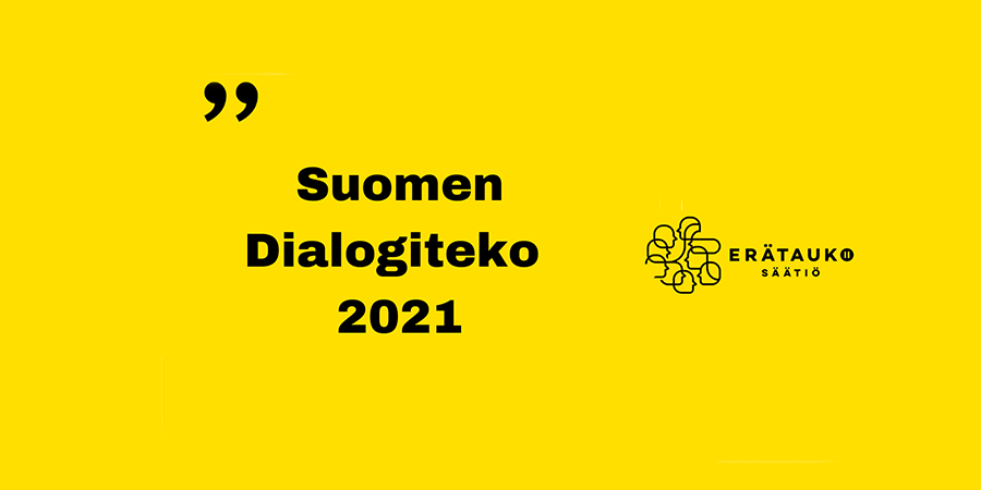 Erätauko-säätiön tehtävänä on vahvistaa demokratiaa, luottamusta ja yhteiskunnallista resilienssiä. Tätä tehtävää toteutamme yhdessä yhteistyökumppanien kanssa järjestämällä dialogeja yhteiskunnallisesti tärkeistä aiheista sekä kouluttamalla eri toimijoita vuorovaikutus- ja dialogitaidoissa. Erätauko-säätiö myöntää vuosittain Suomen dialogiteko -tunnustuksen jollekin toimijalle. Aiemmin tunnustus on myönnetty Miriam Attiakselle ja Lahden kaupungille sekä Sitran Erätauko-hankkeen aikana Mielellään-verkostolle. Lue lisää: www.eratauko.fi